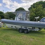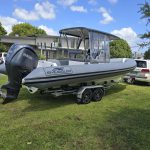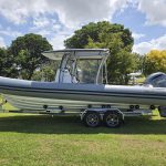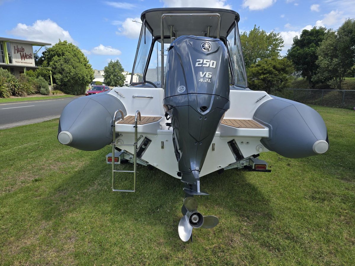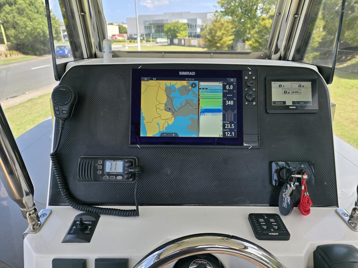 Side clears with S/S supports on console Extended side clears Simrad NSS12 Touchscreen VHF, aerial / USB Outlet Electric toilet in console U-Dek flooring panels fitted Gussi steering wheel upgrade Lifting eyes fitted Yamaha F250 XCB done 236 hours Trailer – brand new Voyager trailer with SS brakes