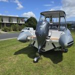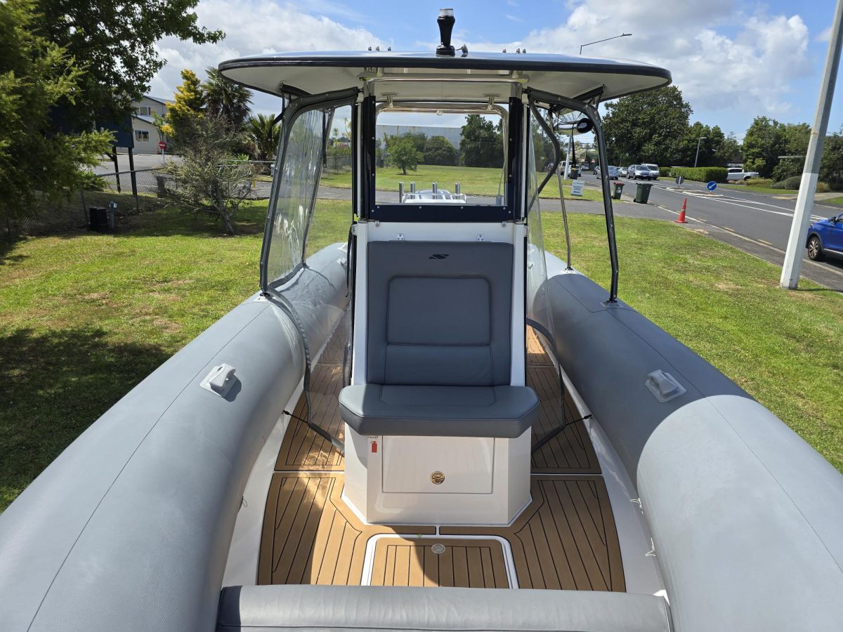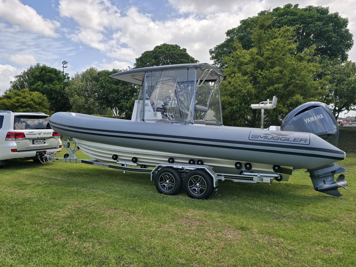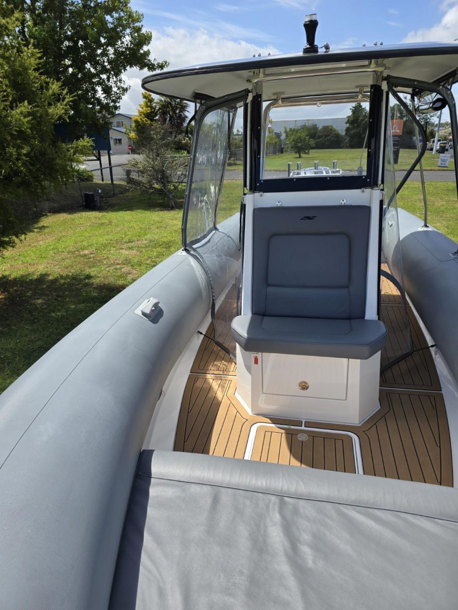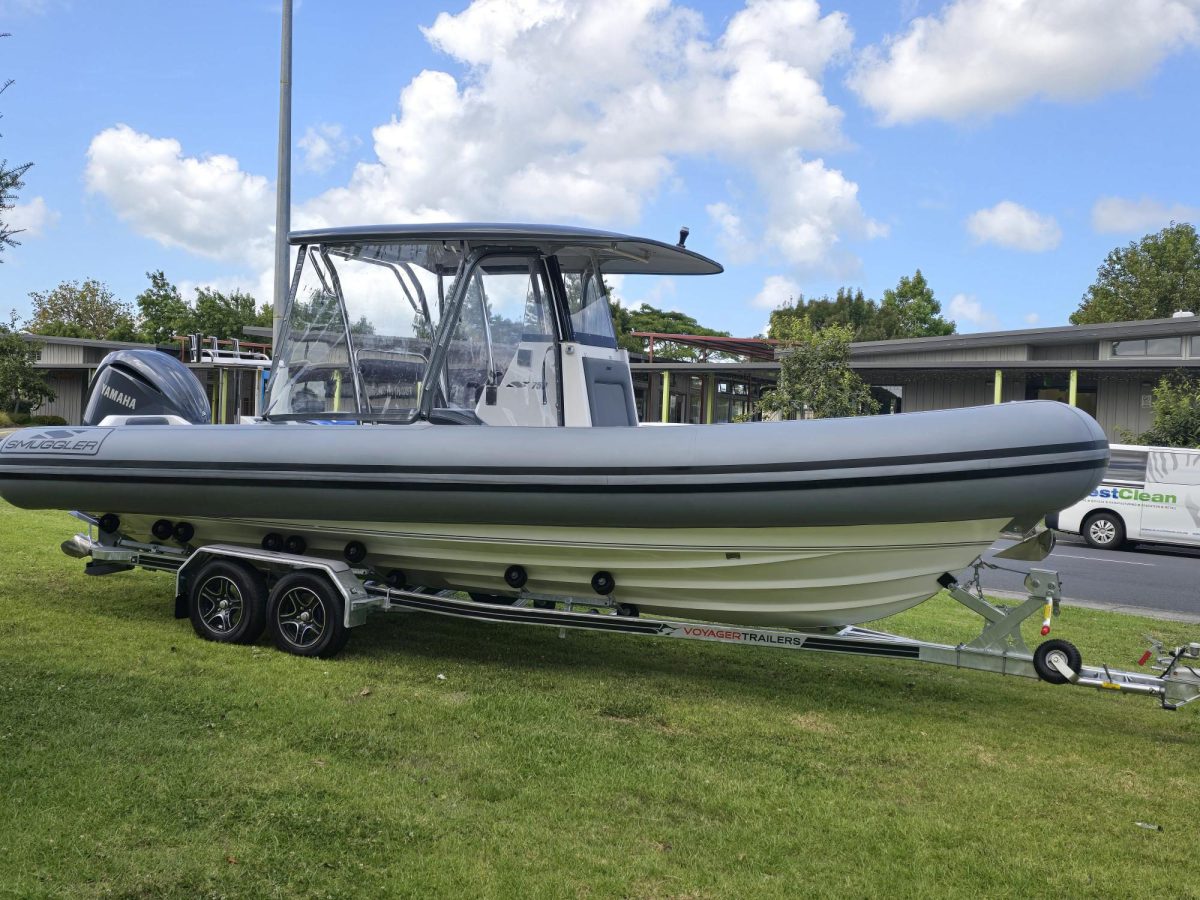Smuggler 750 CC 2022 Fibreglass hull and liner Gen 2 console with windscreen Large forward seat on console, stowage under Hypalon tubes, handles, double wear patches Built in 300 litre fuel tank (approx.)S/S fuel filler Raised forward seat and anchor locker Outboard well with 2x moulded aft seats upholstered Brass keel strip/ Towing eye Hydraulic steering Auto Bilge pumps x2 / Trim tabs 6-Way switch panels x2 Navigation lights, Anchor light Console light, cockpit lights Batteries x2, boxed, switch gear Drink holders / Rod holders x2 Boarding ladder on transom Rod holders x2 Baitboard and pole Through bow anchor with SS anchor Double helmseat with reversible backrest Gen 2 console XL hard top with SS supports Folding hardtop / Removable windscreen