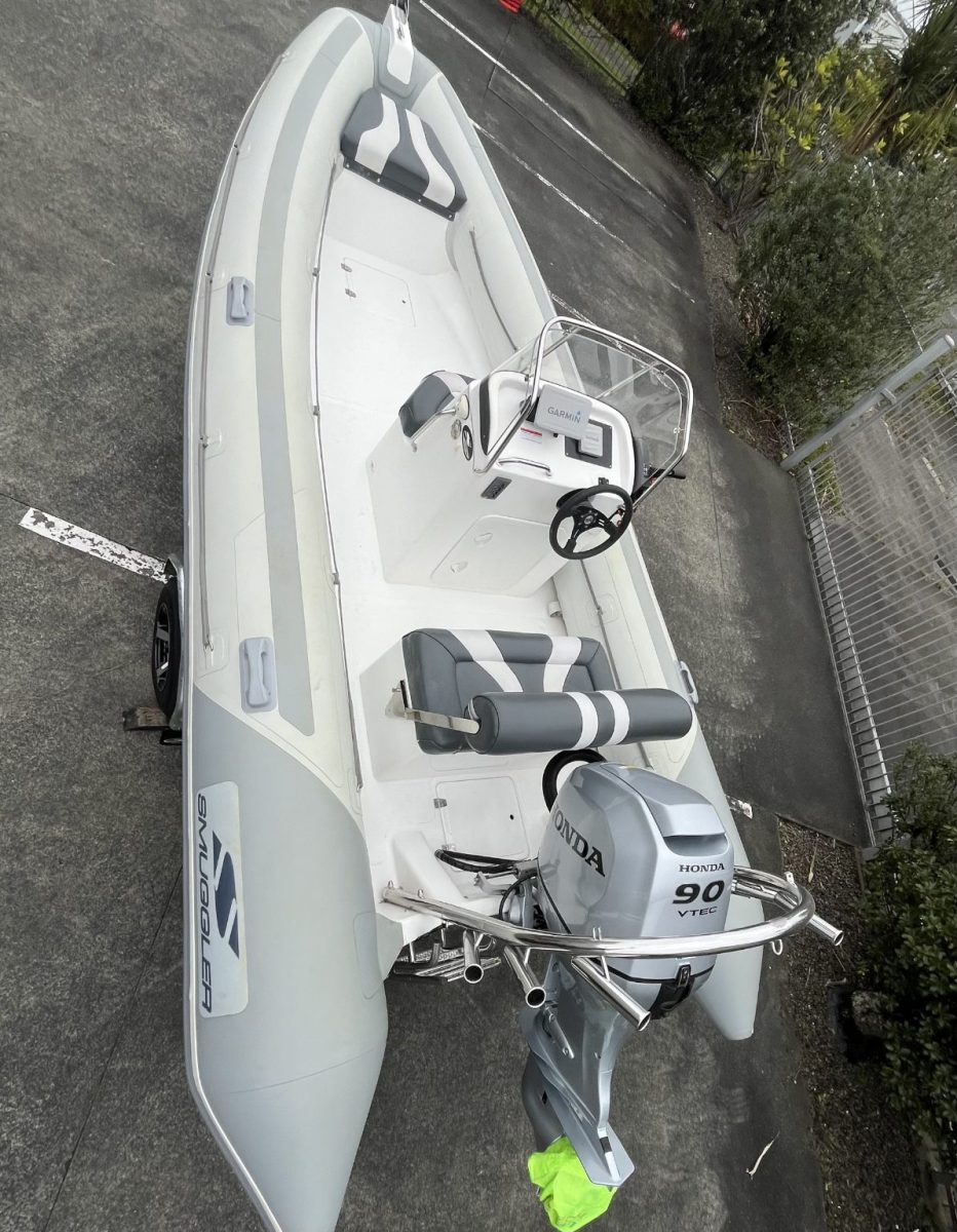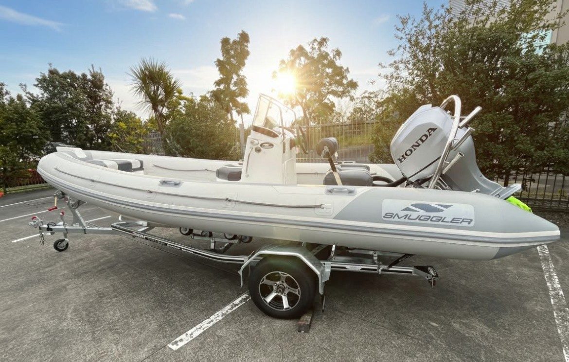2011 Smuggler Strata 550 -2023 NEW Honda BF90 (7 year warranty) serviced done only 37 Hours! -2025 BRAND NEW DMW 450 Premier trailer with NEW 3 YEAR WOF & REG -Garmin Sounder -PVC tubes (5 chambers) in good condition -Fibreglass Hull & Liner -Wide side console with FWD seat -Rear Seat with reversable backrest -Transom mounted ski arch with 6 rod holders -S/S fairlead -Built in 100L Fuel Tank -S/S fuel filler -Raised forward seat and anchor locker -Brass Keel Strip -Bilge Pump -Switch Panel -Nav Lights