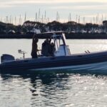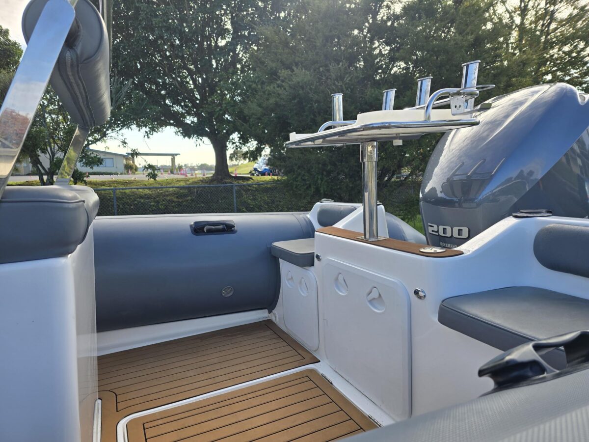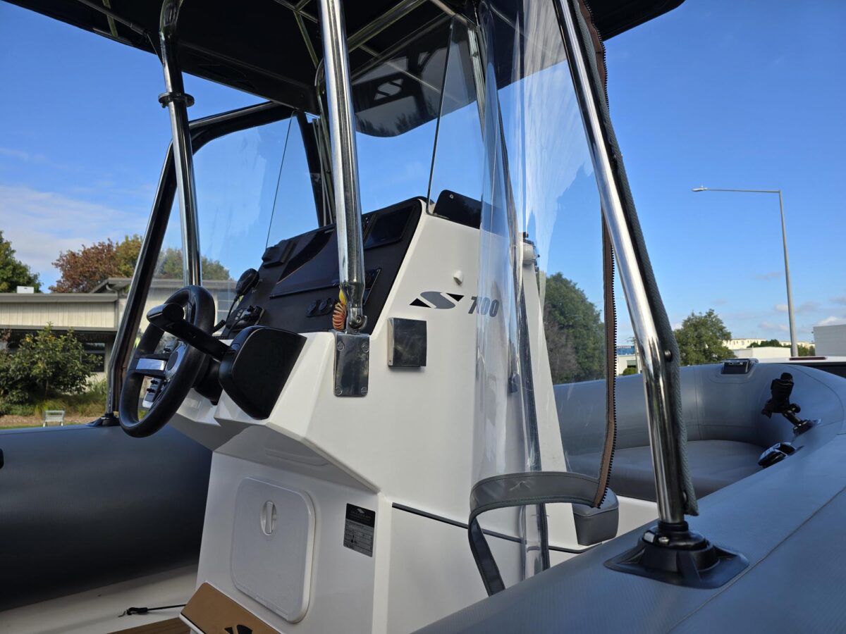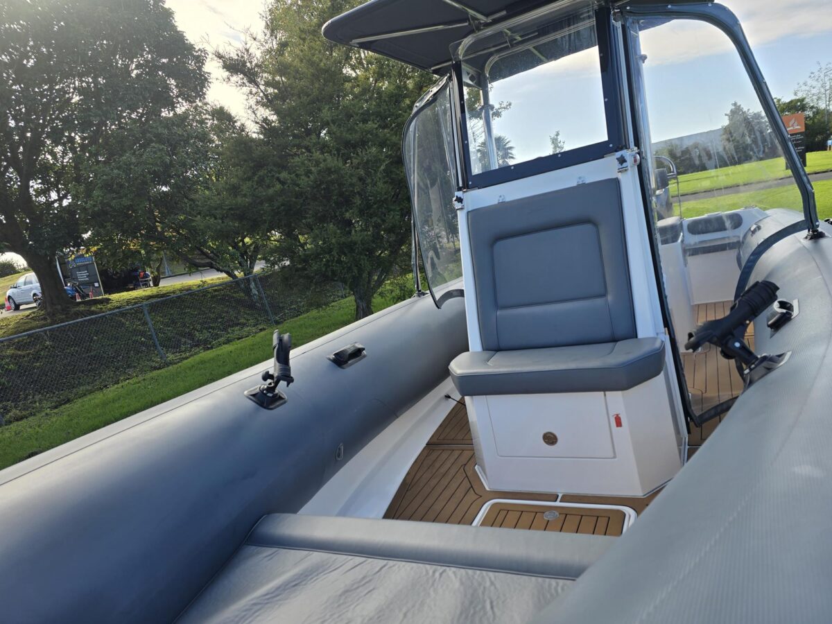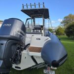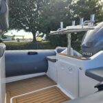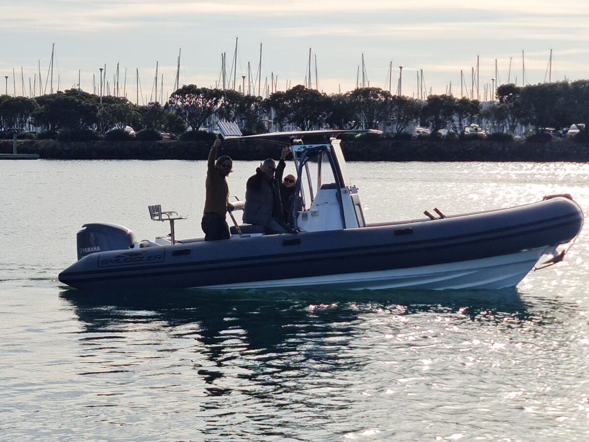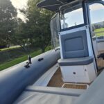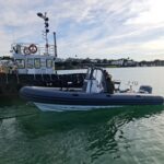 Fibreglass hull and liner 27 degree Smuggler signature hull, Gen 2 console with windscreen, carbon dash Large forward seat on console, stowage under Hypalon tubes, handles, double wear patches where required, repair kit, dual action pump, full manufacturer’s guarantee S/S fairlead on fibreglass support Built in 300 litre fuel tank (approx.) Raised forward seat and anchor locker Outboard well with 2x moulded aft seats upholstered Brass keel strip Towing eye Hydraulic steering S/S fuel filler Bilge pumps x2 Trim tabs 6-Way switch panels x2 Navigation lights, Anchor light Console light, cockpit lights Batteries x2, boxed, switch gear Compass UV resistant upholstery S/S Drink holders x2 Boarding ladder on transom Smuggler Graphics Double helmseat with reversible back rest, handle, aft facing foot rest Folding canvas T-Top with rocket launcher Side clears with S/S supports on console Simrad NSS12 Touchscreen Stereo – Fusion, 2x 6” Speakers VHF, aerial 12v / USB Outlet Camera fitted in bow Salt water wash down pump, hose etc Live bait tank Bait board with S/S surround and rod holders Ski pole (fits in bait board mount) Remote anchor winch with through bow anchor S/S Anchor with waterguard, chain, and warp Fire extinguisher fitted Extra rod holder x2 U-Dek flooring panels fitted Trailer – Multi roller, double axle, jockey wheel, registration and WOF